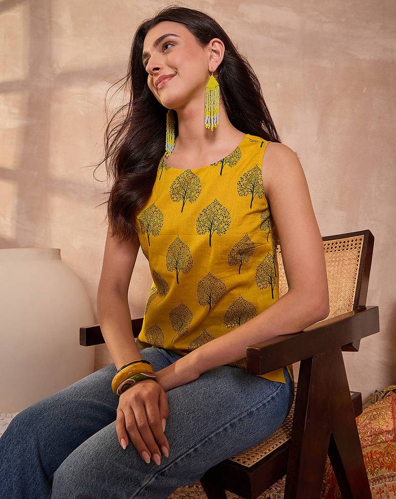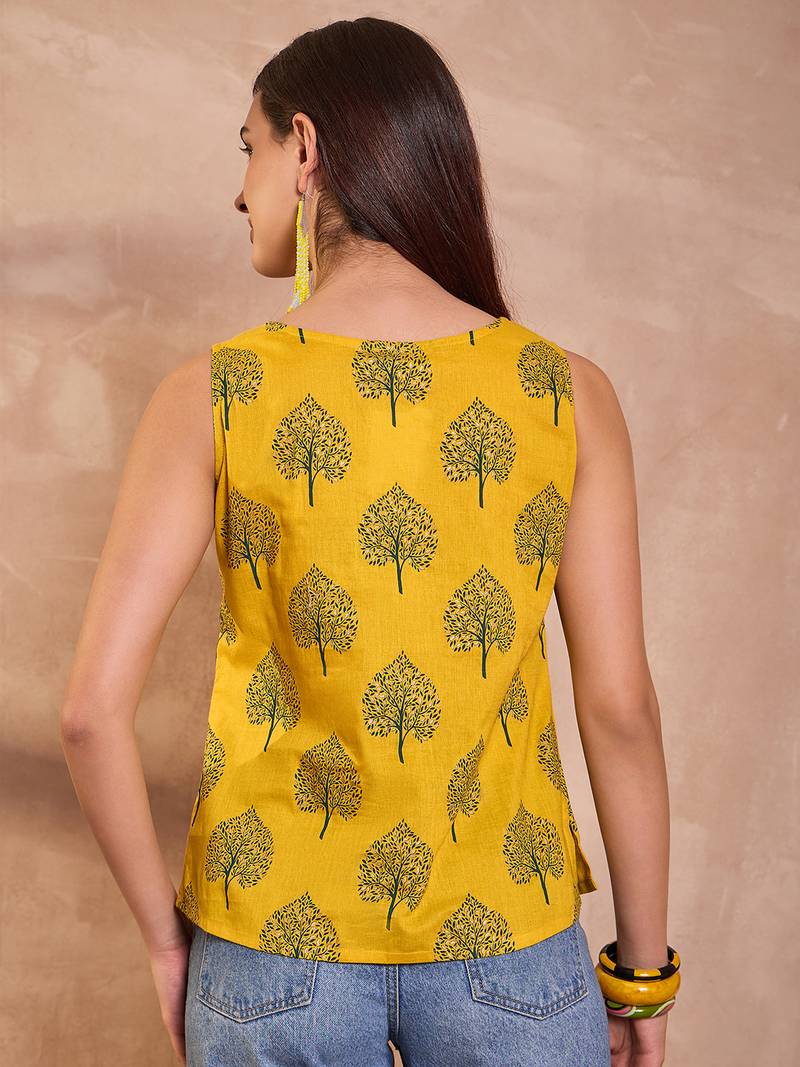 | Product Name | Women Yellow Floral Printed Cotton Blend Tops | |