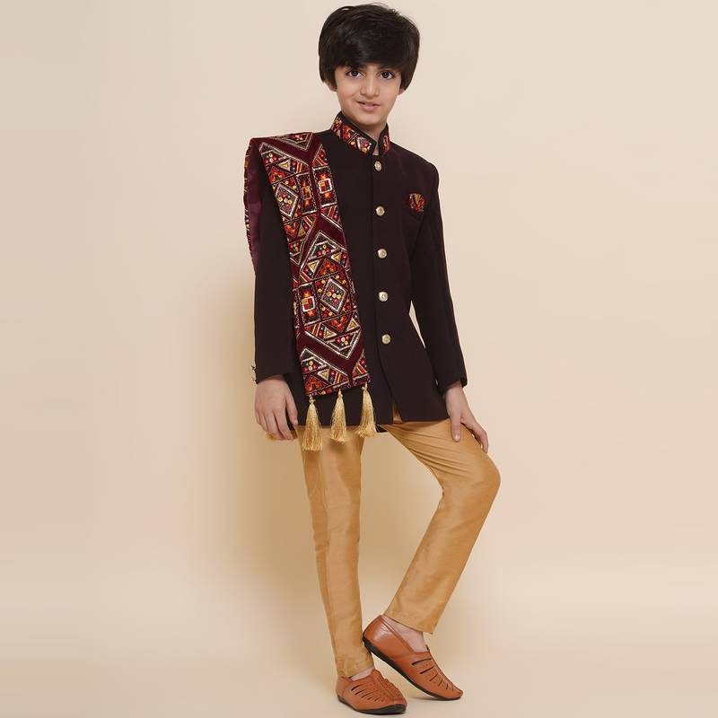 | Product Name | Maroon Plain Poly Cotton Boys Sherwani | |