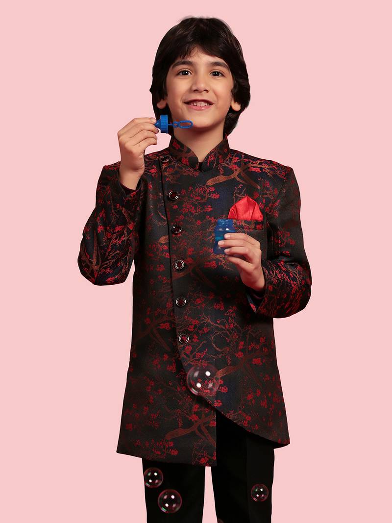 Red plain jaquard boys-indo-western-dress