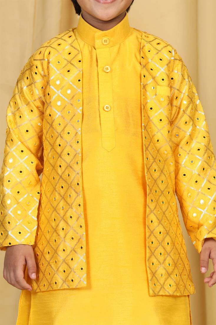 | Product Name | Yellow Embroidered Cotton Silk Boys Indo Western Dress | |