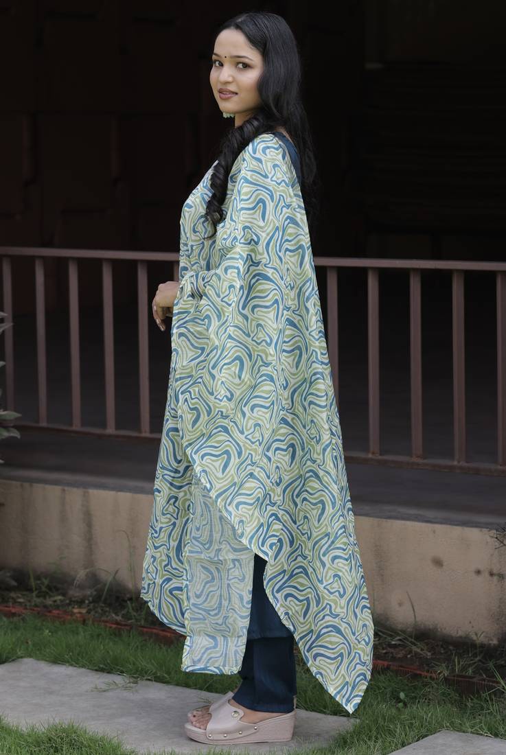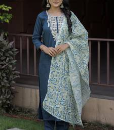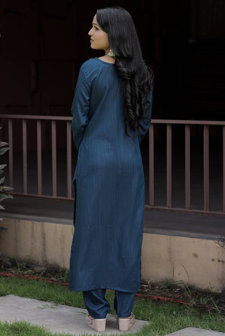 Elegant petrol blue kurta set with printed dupatta festive & ethnic wear collection stitched