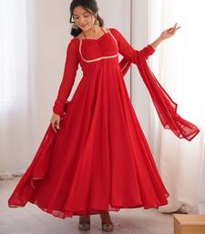 Elegant red georgette anarkali gown with dupatta stitched