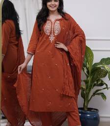 Premium ethnic wear for women featuring a graceful rust kurta set stitched