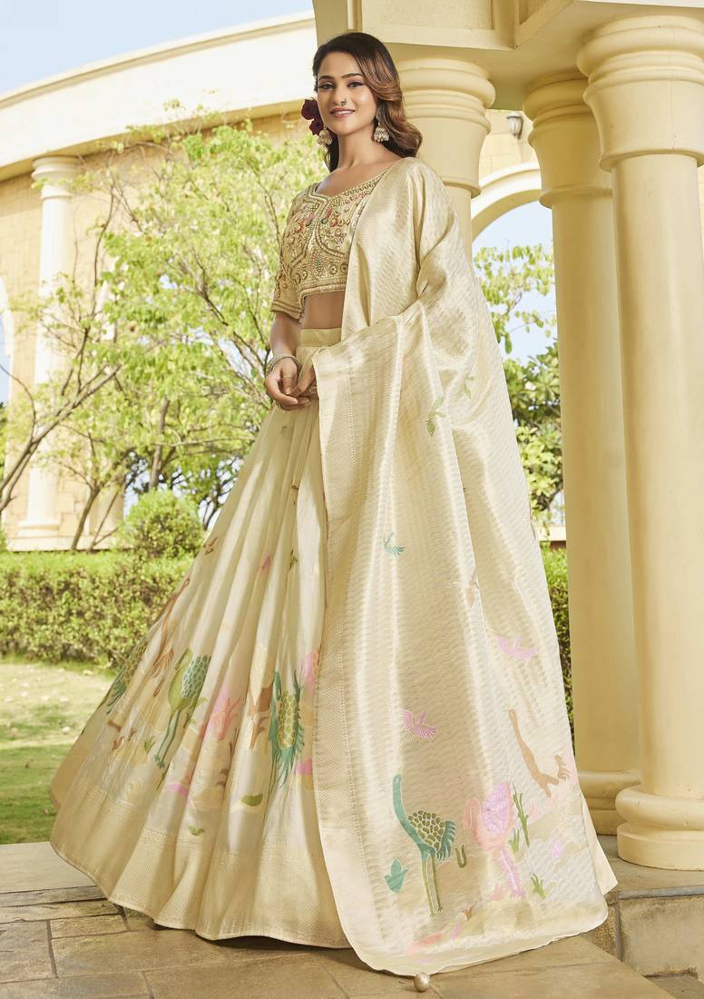 | Product Name | Cream Tusser Embroidered Lehenga Set With Peacock Motifs | |