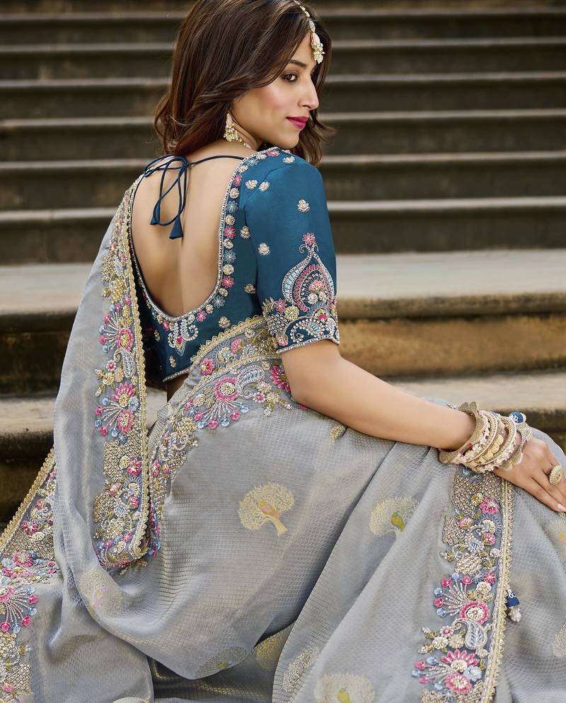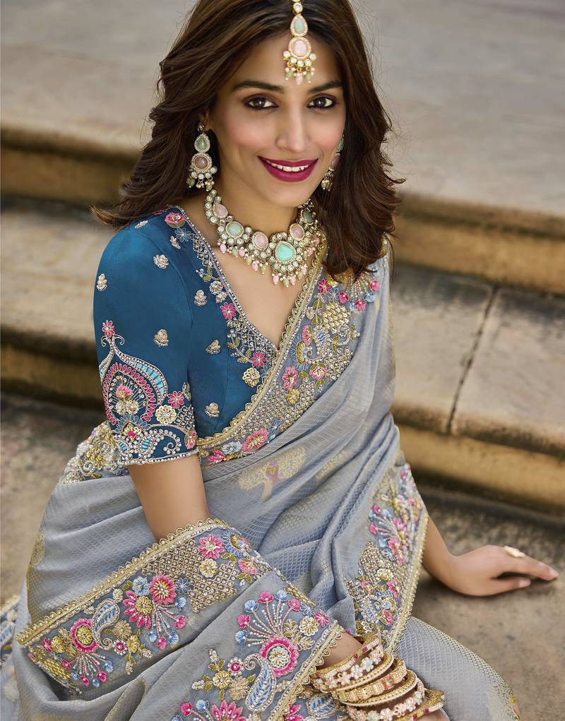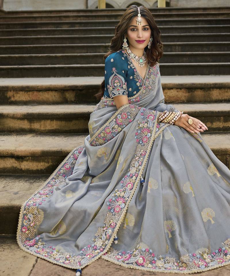 Saree : Color- Grey / Fabric- Banarasi