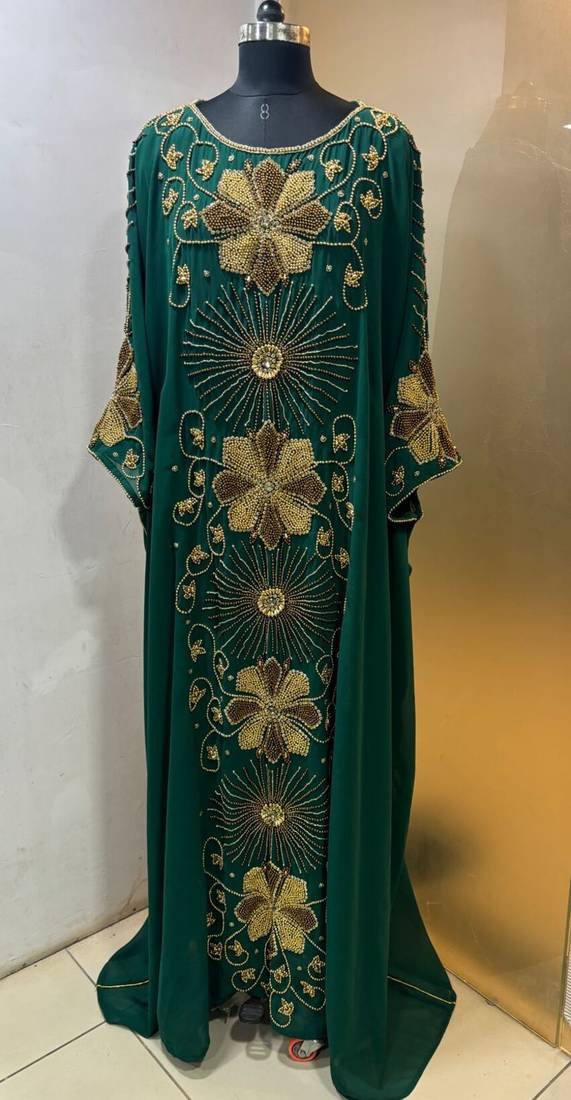 | Product Name | Emerald Green Heavy Beaded Luxury Farasha Kaftan | |