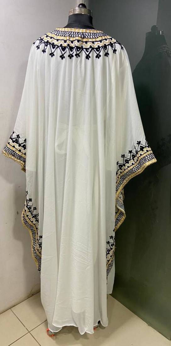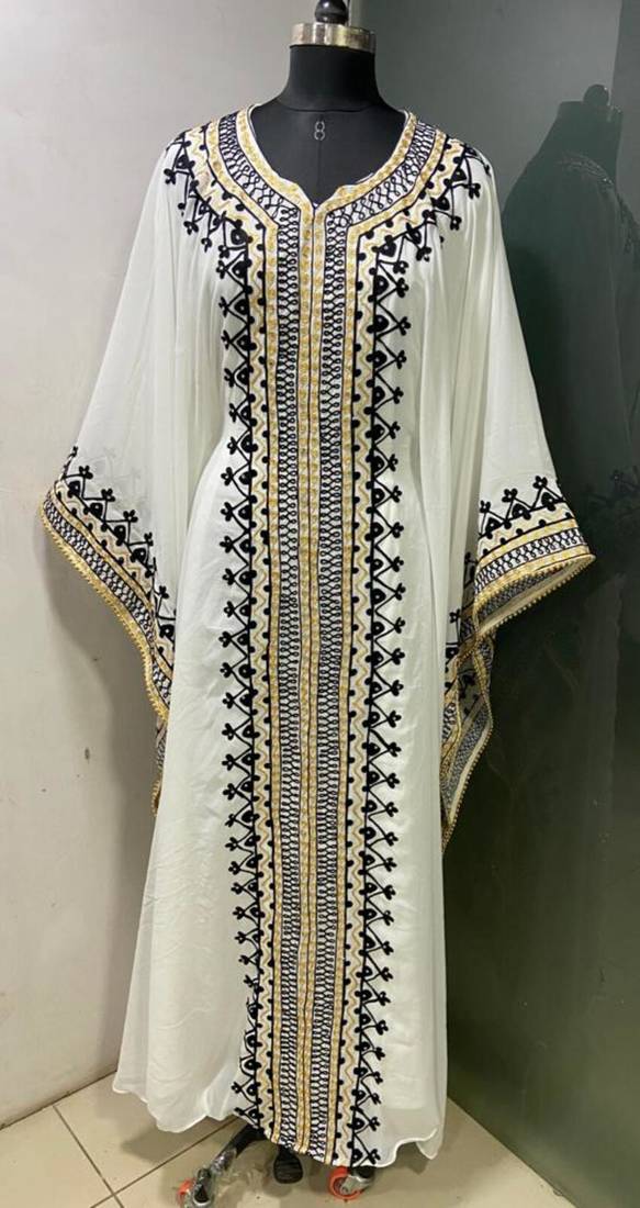 | Product Name | White Arabic Gold And White Embroidery Work Jalabiya Kaftan | |