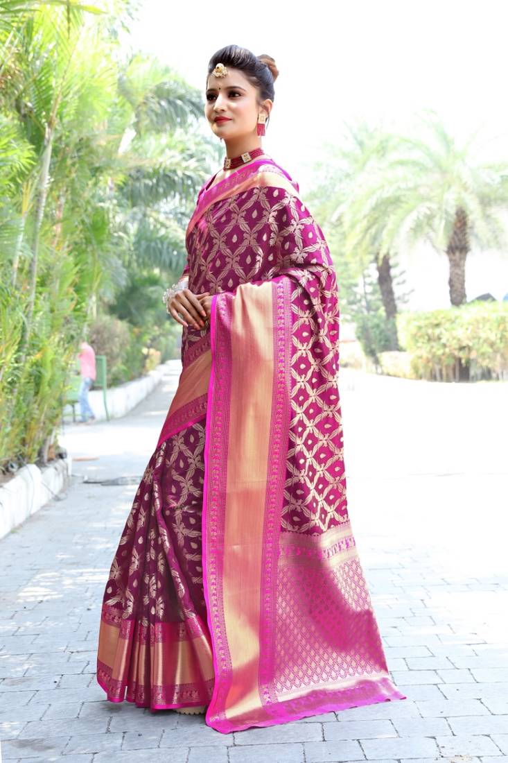 | Product Name | Purple Kanchipuram Handloom Weaving Silk Saree With Rich Contrast Zari Wooven Pallu & Contrast Barcode Blouse | |