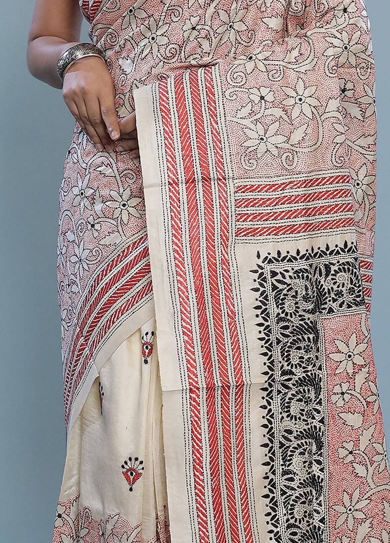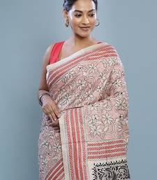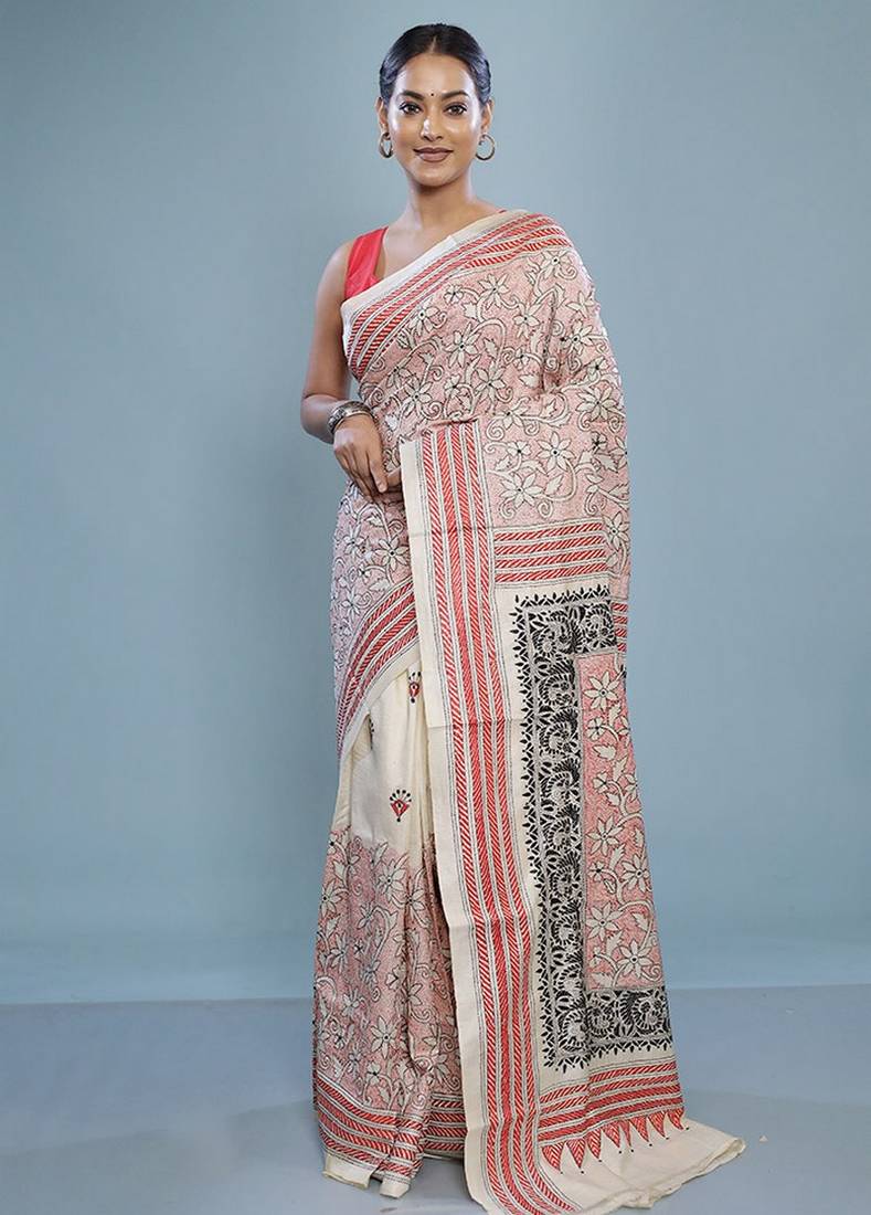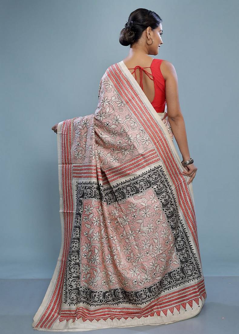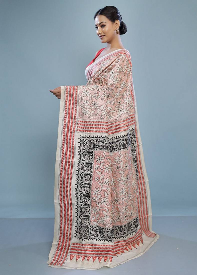 Pink gachi tussar nakshi kantha saree with blouse piece