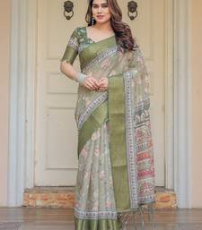 Embrace Effortless Elegance With This Handloom Linen Weaved With Golden Zari Floral Printed Saree, Crafted To Bring Together Heritage Artistry And Modern Comfort. Made From Premium Handloom Linen Weaved With Golden Zari, This Saree Showcases Delicate Floral Digital Prints That Bloom Across The Fabric With A Soft, Artistic Touch. Edged With Playful Tassels On The Pallu, It Adds A Charming Flair That Complements Both Casual And Festive Occasions.