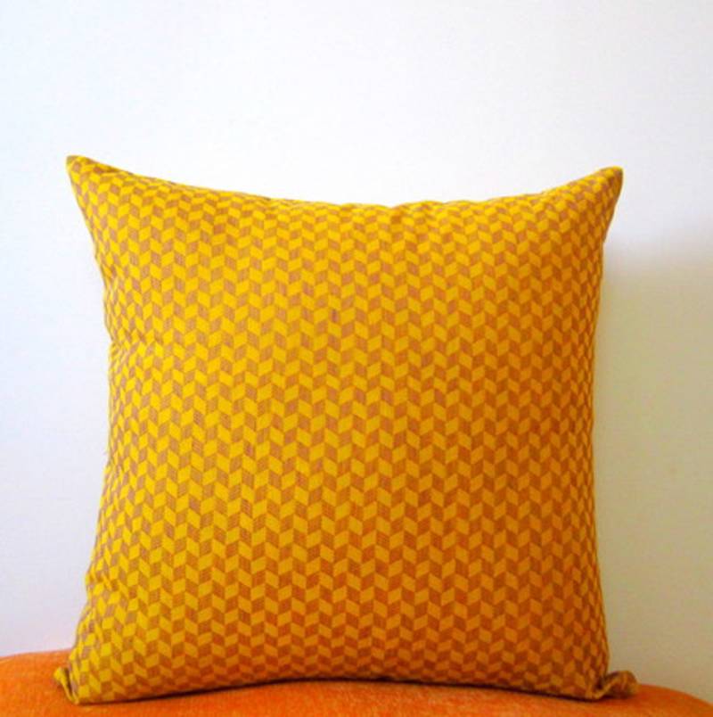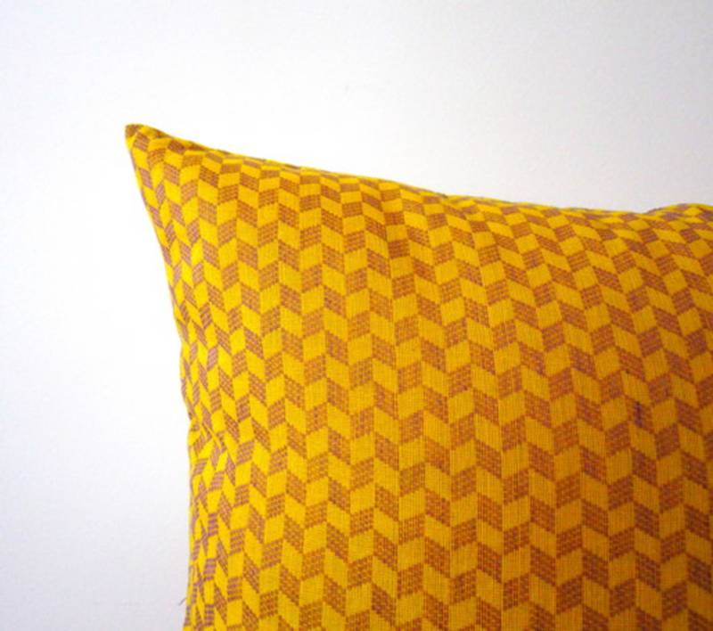 Product Description | Yellow Base With Light Brown Woven 'checkered' Geometric Pattern Print In The Front And Back Traditional Handloom Fabric Gorgeous Addition To Your Space Adding A Fun Element Adding A Splash Of Colour Can Be Handwashed, Dry Clean Recomended |
