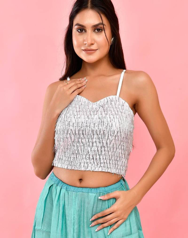 Embellished sequined strap padded saree blouse