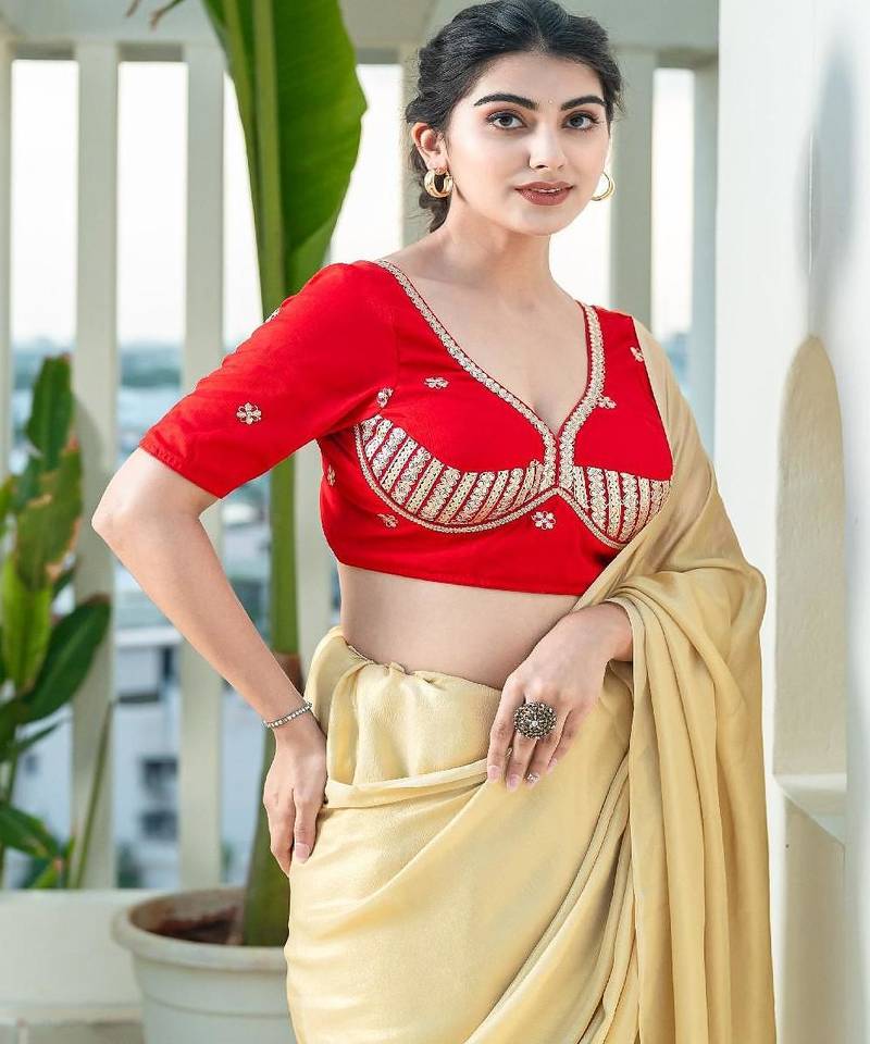 | Product Description | Red Embroidered Blouse Has A Sweeteart Neck, Short Sleeves, And Hook And Eye Closure With Tie Up Detail. |
