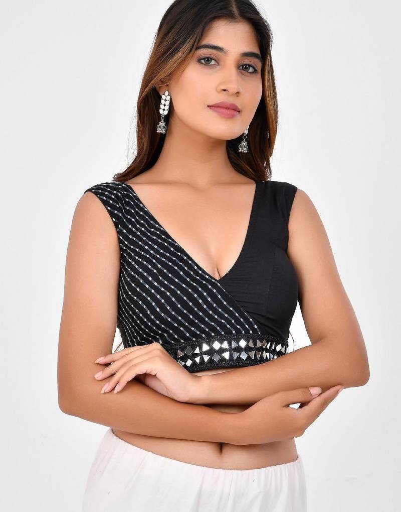| Product Name | Lehriya Printed With Embroidered Sleeveless Saree Blouse | |