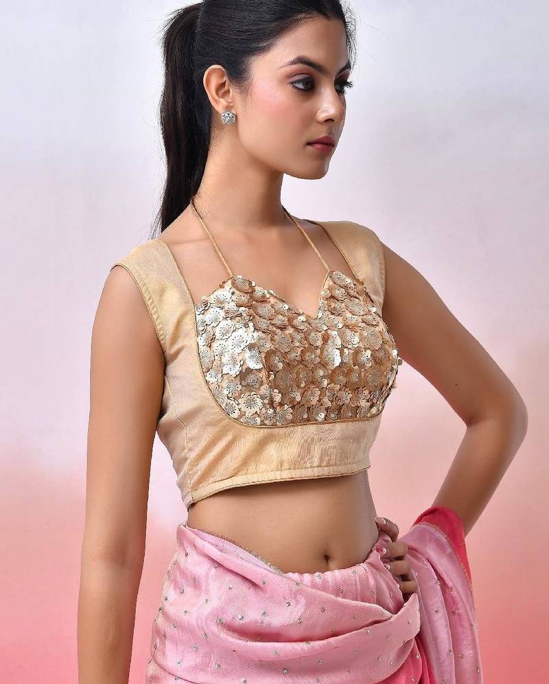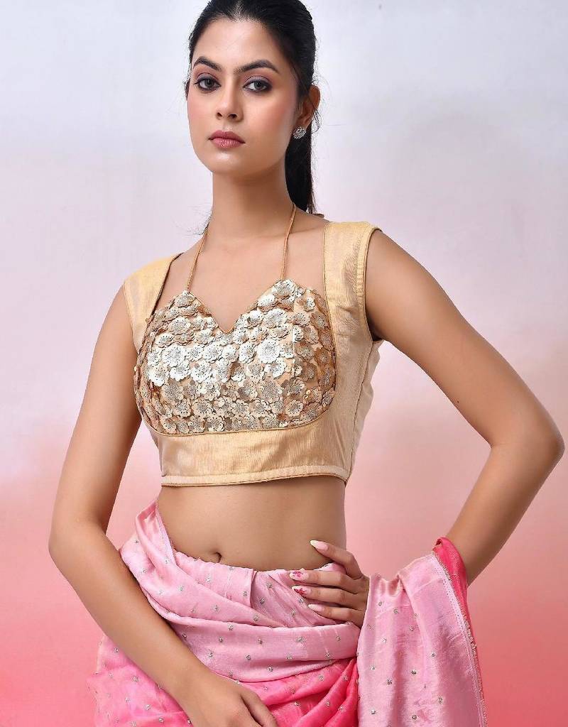 | Product Description | Beige Sequined Blouse Has A Sweetheart Neck, Sleeveless, Hook With Tie Up Closure. |