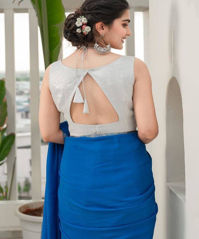 | Product Description | Grey Sequined Blouse Has A Sweetheart Neck, Sleeveless, Hook With Tie Up Closure. |