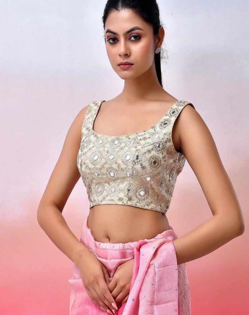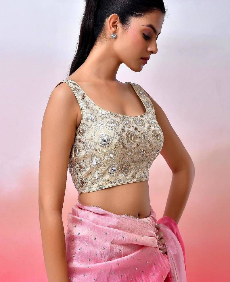 Women embroidered sequined mirror work saree blouse