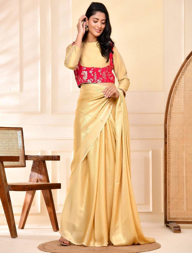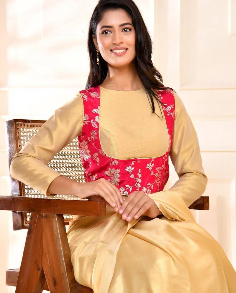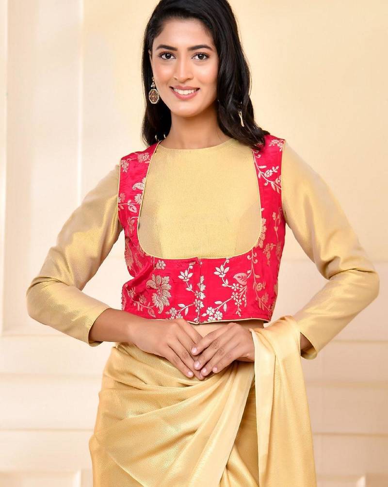 | Product Name | Woven Designed Round Neck Banarsi Jacket With Golden Blouse | |