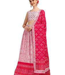 Amrutam fab women's whitre & pink color satin digital print crush designer lehenga choli