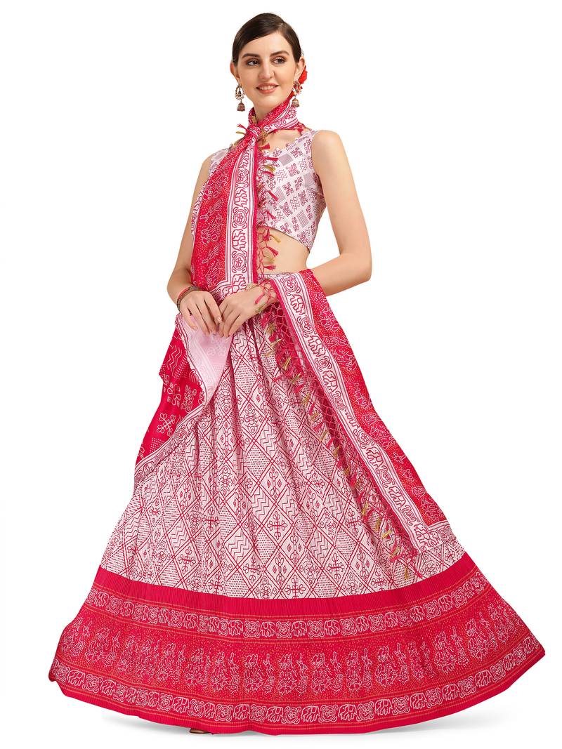 | Product Name | Amrutam Fab Women's Whitre & Pink Color Satin Digital Print Crush Designer Lehenga Choli | |