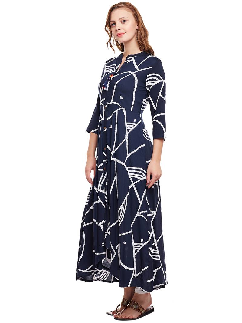 | Product Description | Women Navy Maxi Dress Rayon Printed Mandarin Collar Maxi Dress |