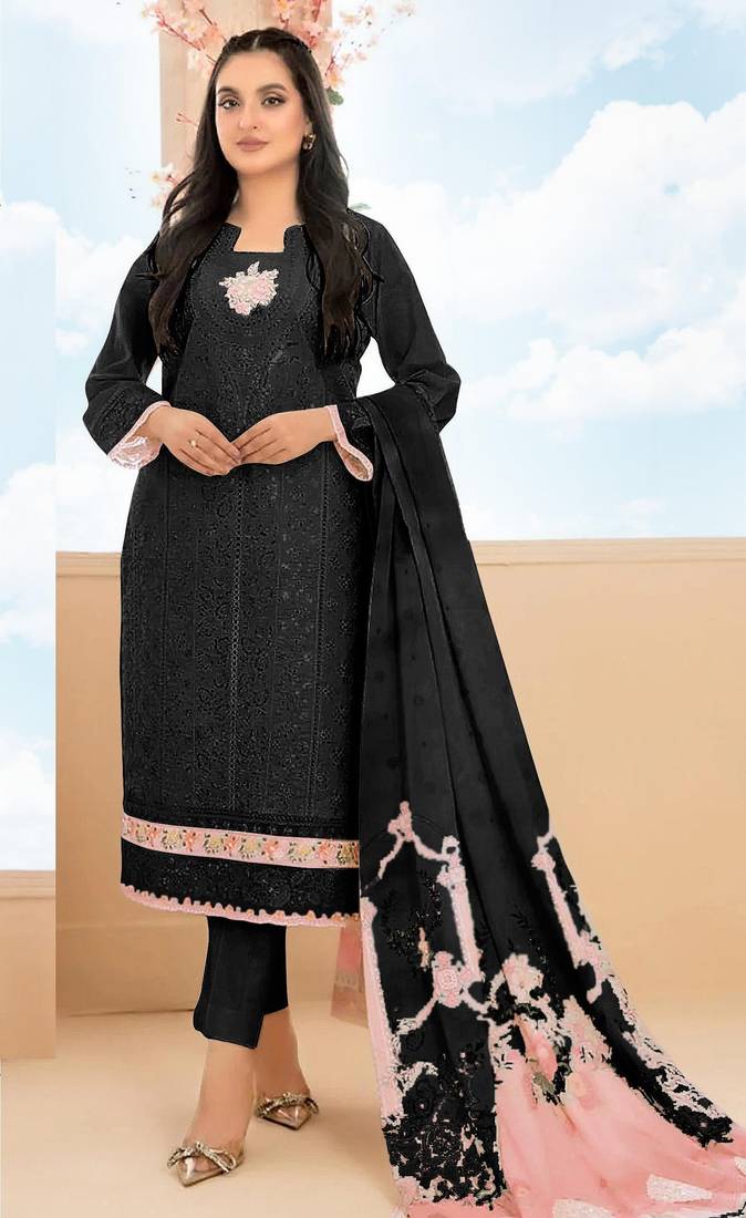 | Product Name | Black Cambric Cotton Semi Stitched Suit With Embroidery & Sequence Work | |