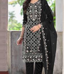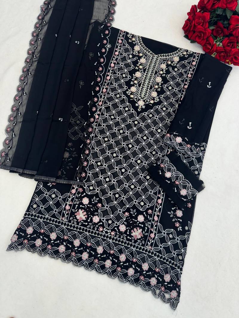 Black chiffon embroidered sequin suit semi stitched