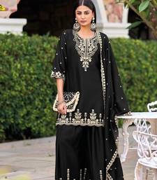 Black chinon readymade plazzo suit with heavy embroidery work stitched
