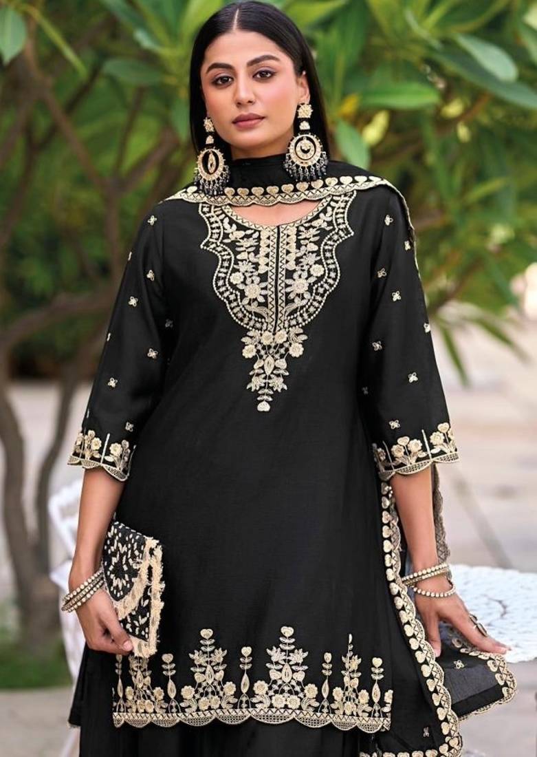 Product Name Black Chinon Readymade Plazzo Suit With Heavy Embroidery Work