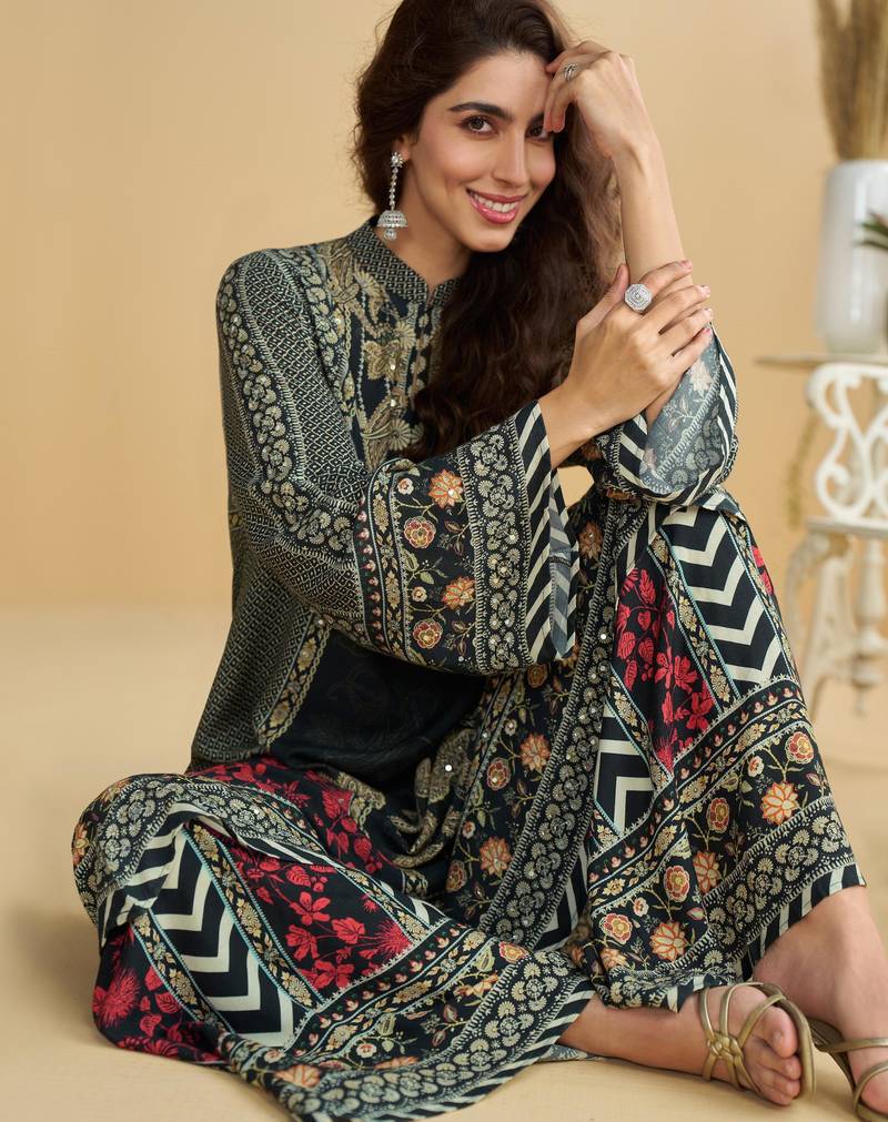 | Product Name | Black Crepe Suit Full Stitched Free Size | |
