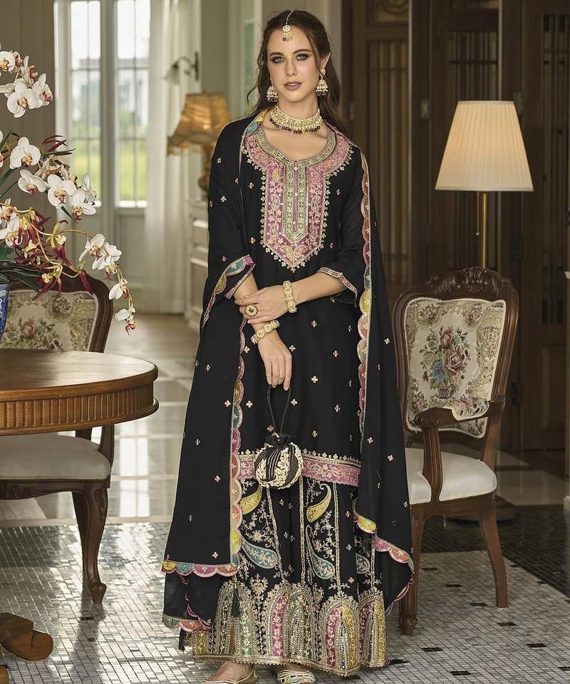 Product Name | Black Embroderied Silk Palazzo Suit | |