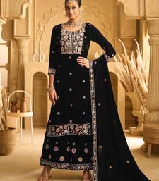 Black embroderied work velvet palazzo suit semi stitched