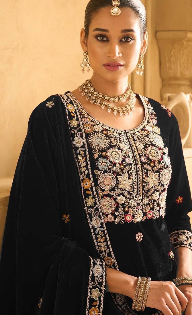 Product Name | Black Embroderied Work Velvet Palazzo Suit | |