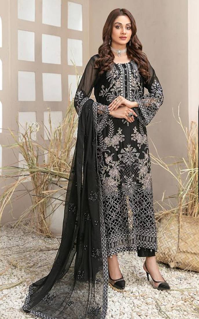 Product Name | Black Faux Georgette Semi Stitched Suit With Embroidery Work | |