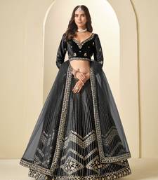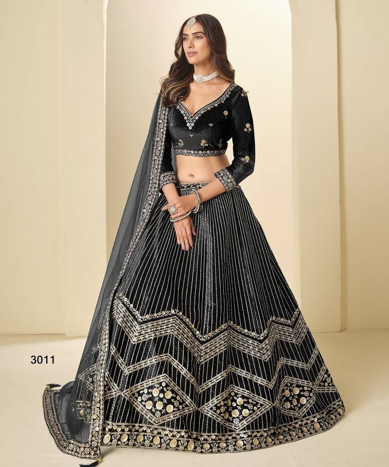 Black ice velvelt semi stitched lehenga choli witn embroidery work