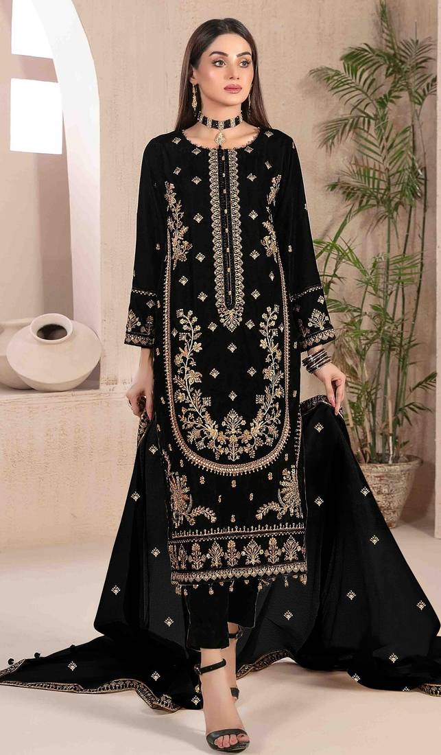 Product Name | Black Velvet Semi Stitched Suit With Embroidery Work | |