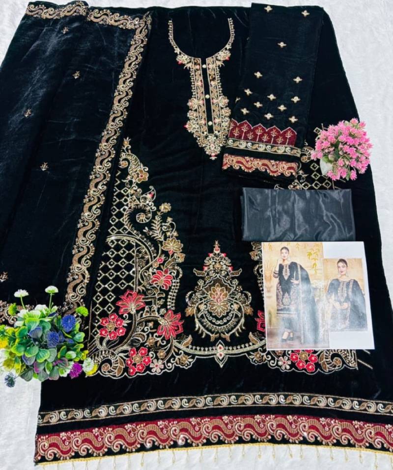 | Product Name | Black Velvet Semi Stitched Suit With Embroidery & Zarkan Work | |