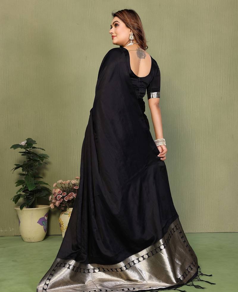 | Product Name | Black Zari Weaving Work Satin Silk Saree With Blouse | |