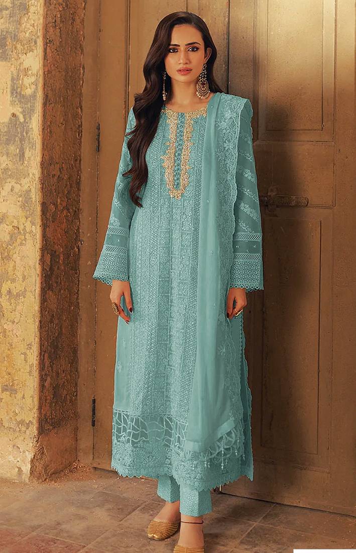 | Product Name | Blue Georgette Semi Stitched Suit With Sequence & Multi Thread Work | |