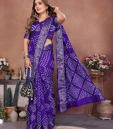 Blue handmade bhandhej viscos silk blend saree with blouse