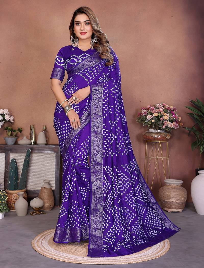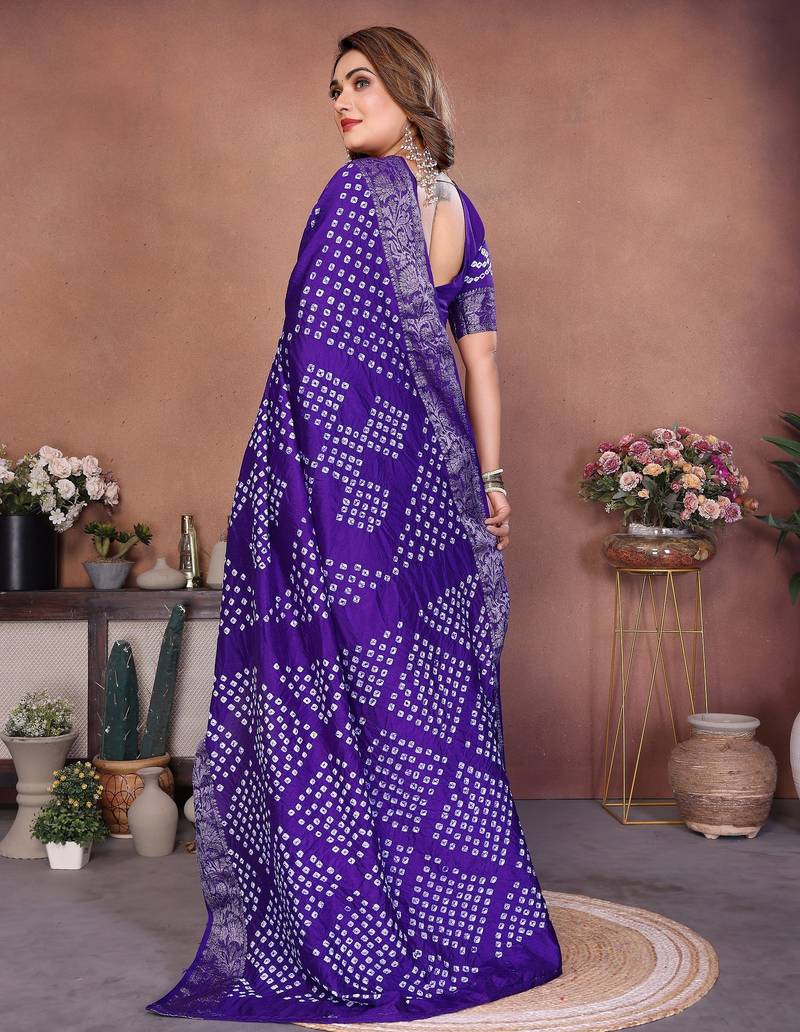 | Product Name | Blue Handmade Bhandhej Viscos Silk Blend Saree With Blouse | |