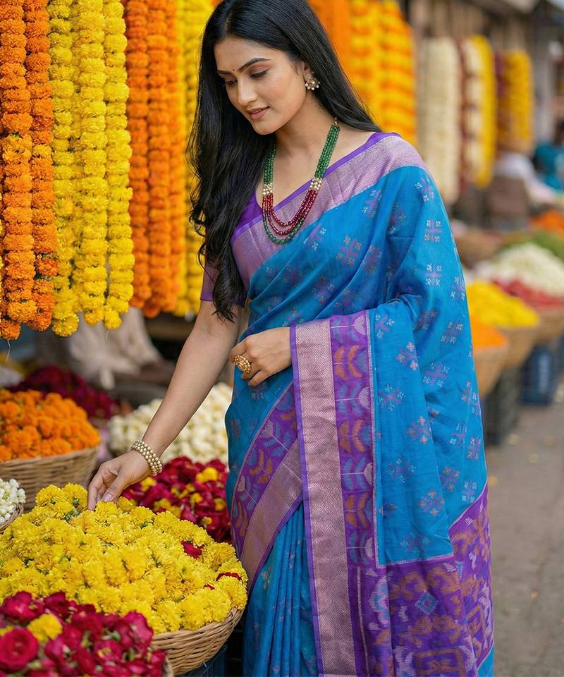 | • | Saree | : | Color- Blue / Fabric- Pochampally |