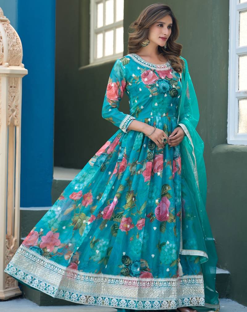 | Product Name | Blue Taby Silk Readymade Anarkali Suit With Embroidery Thread & Sequence Work | |