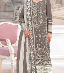 Bronze silk suit with embroidery & khatli work semi stitched