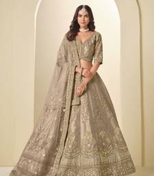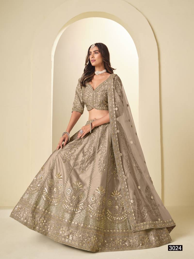 Brown art silk semi stitched lehenga choli with heavy embroidery work