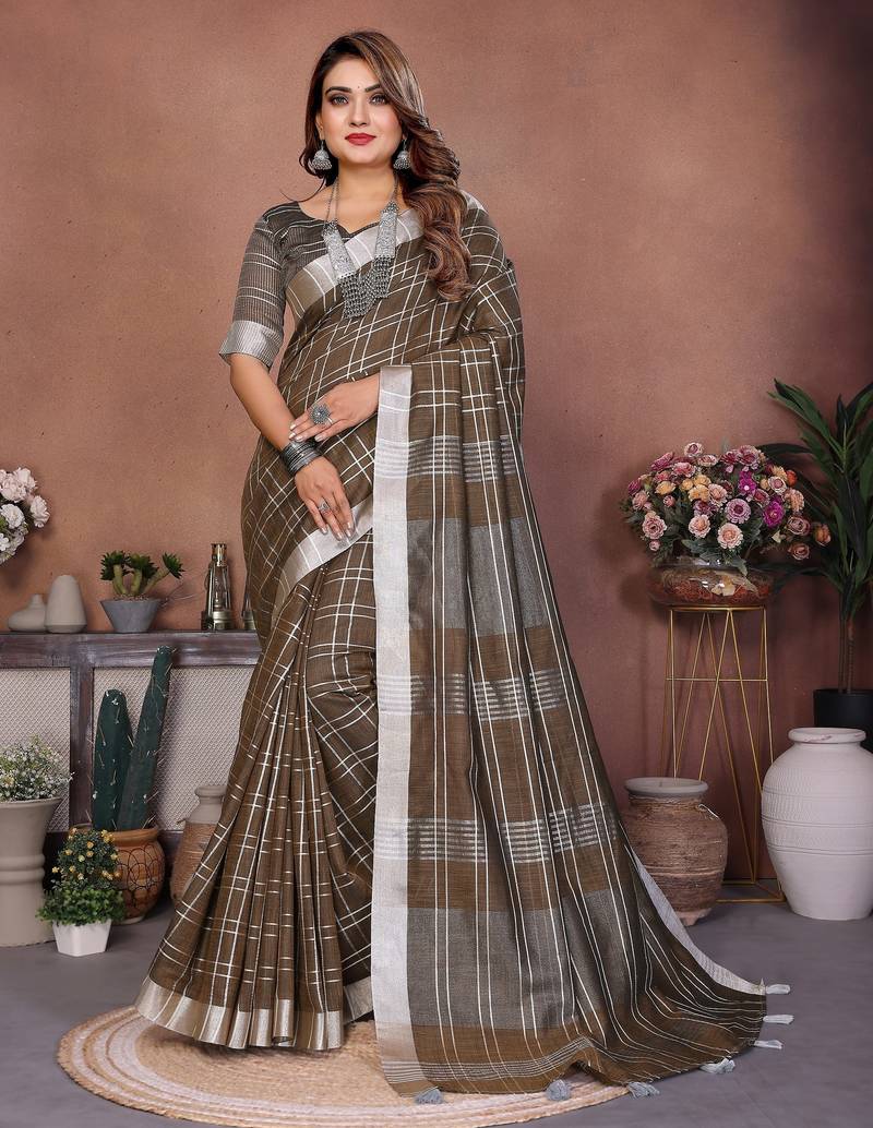 | Product Name | Brown Weaving Linen Cotton Saree With Blouse | |