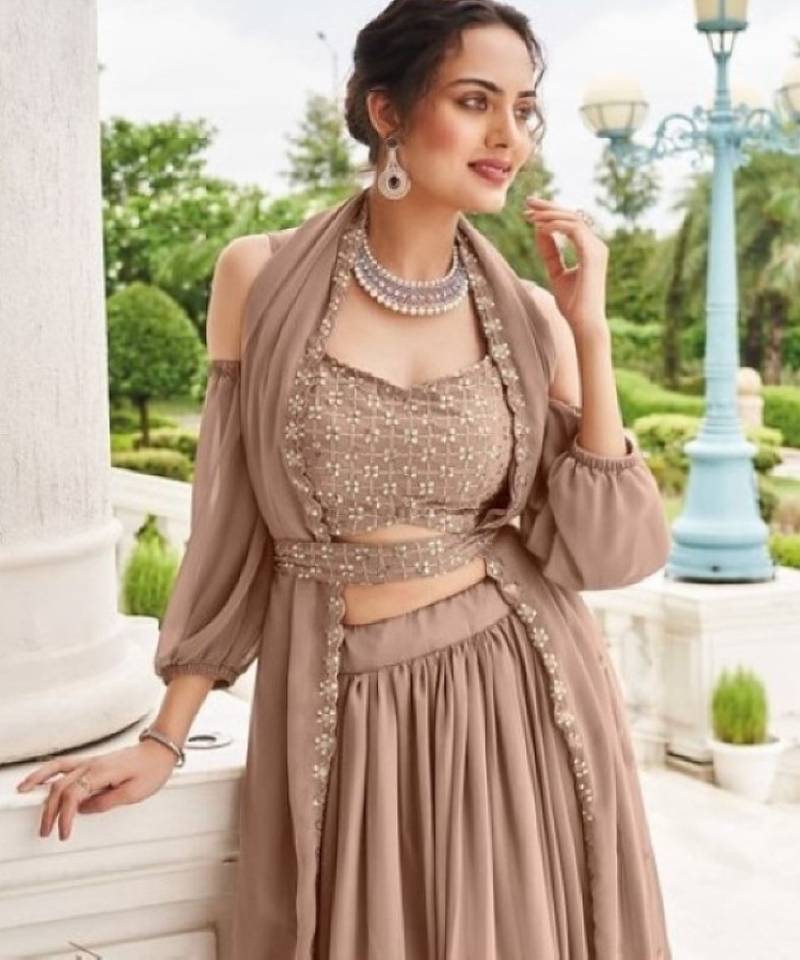 | Product Name | Chiku Georgette Semi Stitched Lehenga Choli With Sequence & Thread Work | |