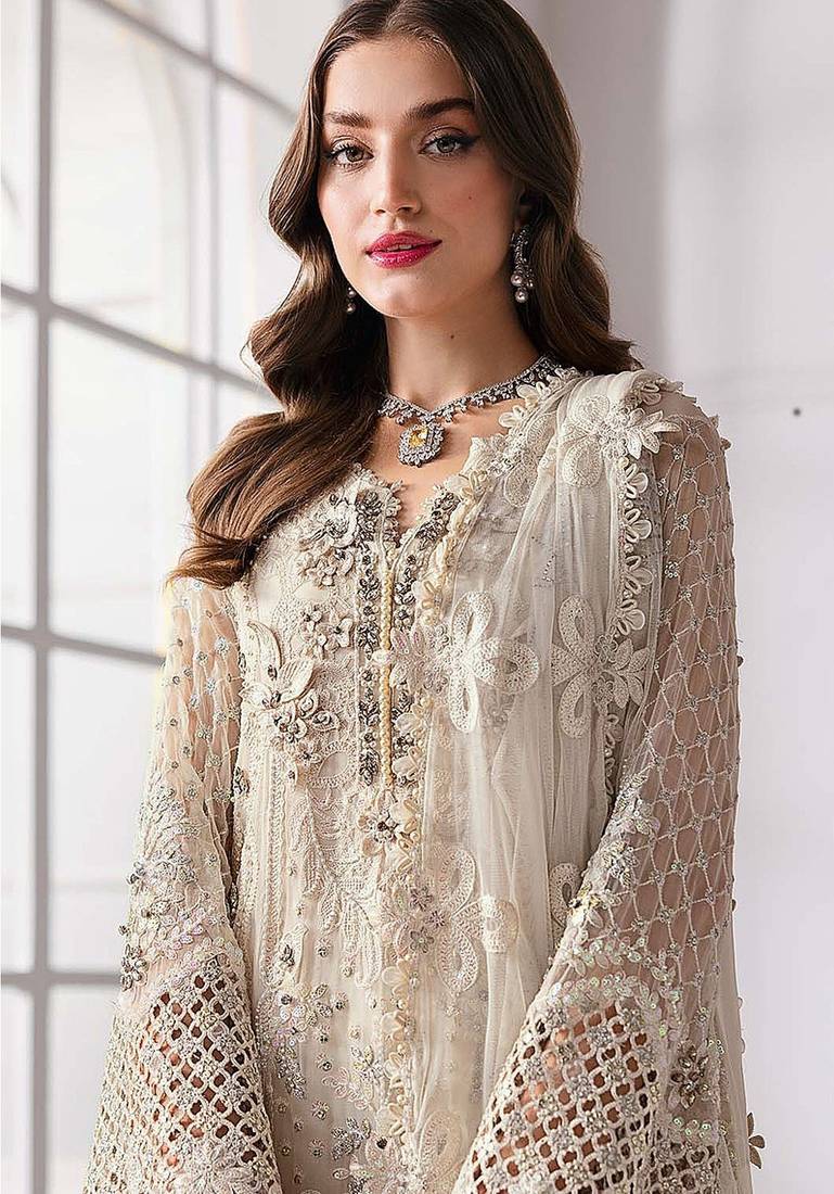 | • | Kameez | : | Color- Cream / Fabric- Faux Georgette |