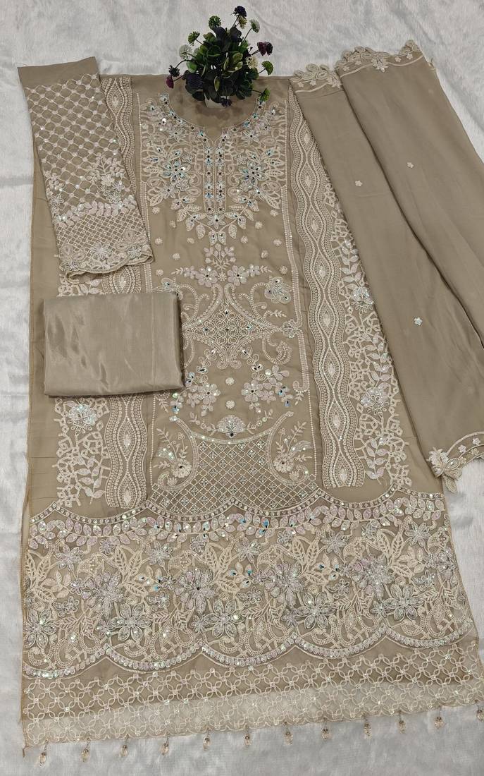 | Product Name | Cream Fox Georgette Suit With Khatli & Sequin Work | |