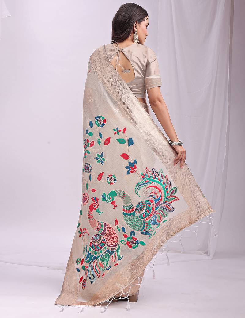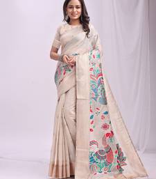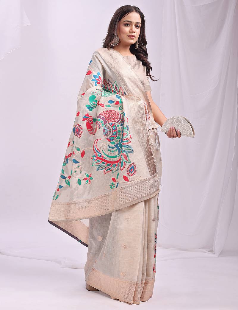 Product Name Cream Linen Cotton Woven Saree With Blouse